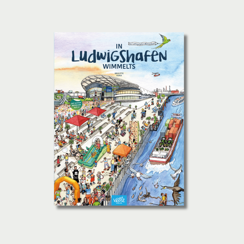 Das Pappbilderbuch zeigt auf 16 Seiten viele bekannte Orte aus Ludwigshafen.